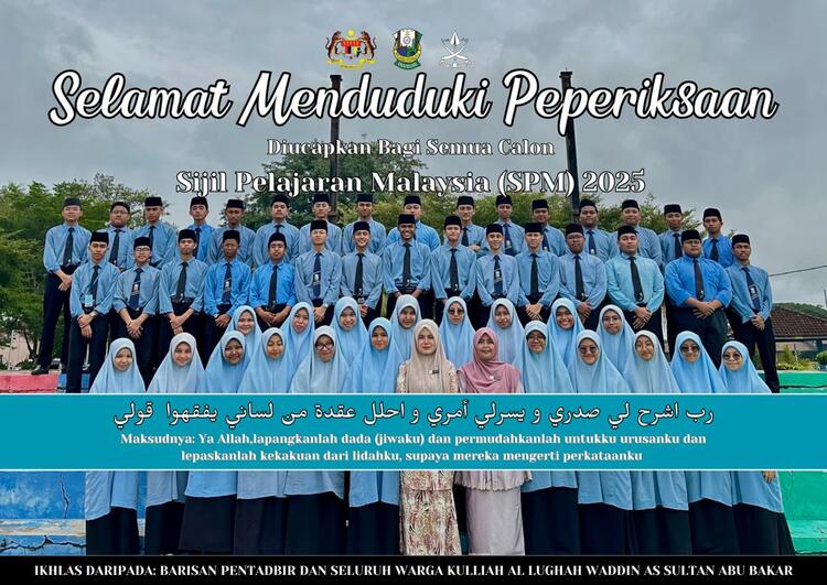 Bittaufiq wan Najah diucapkan kepada semua calon yang bakal menduduki peperiksaan Sijil Pelajaran Malaysia (SPM) Tahun 2025.